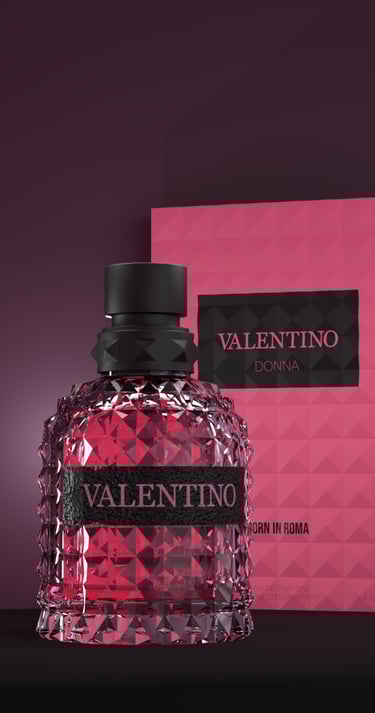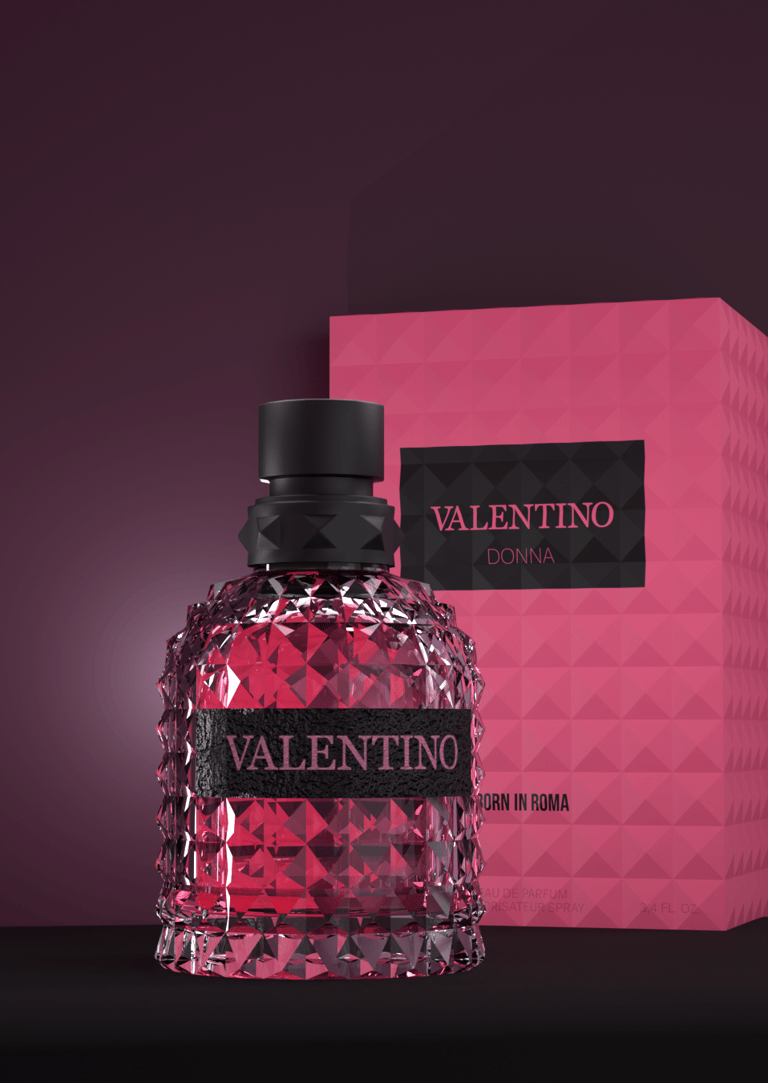 Travail sur la bouteille de parfum Valentino Donna : Mon principal problème concerne l'éclairage de la scène 3D. En revanche, ce que j'apprécie le plus, c'est le réalisme de la bouteille et sa forme. La date de réalisation des images est le 5 janvier 2024, et le temps total consacré à ce travail est de 5 heures.